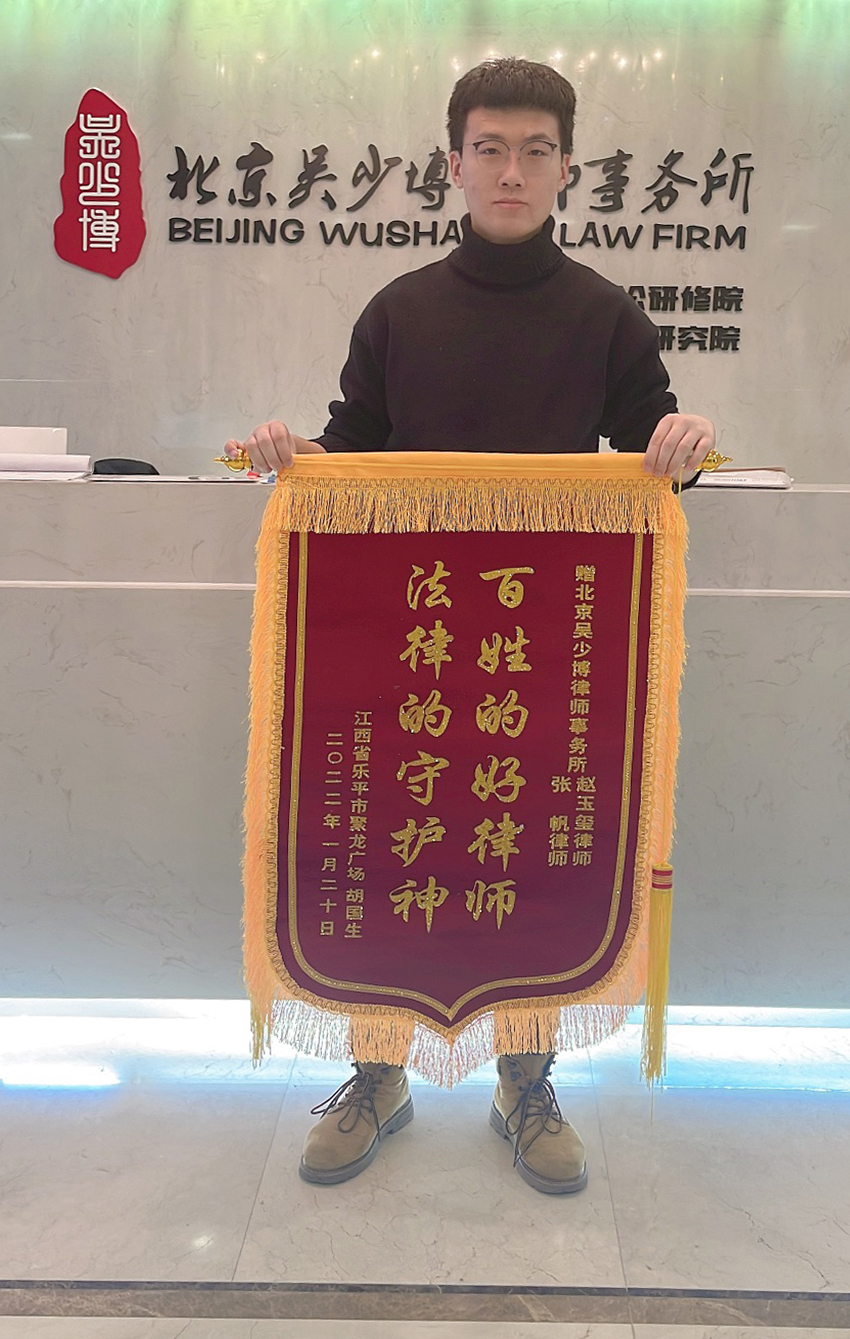 張帆、趙玉璽收到江西客戶贈送的錦旗